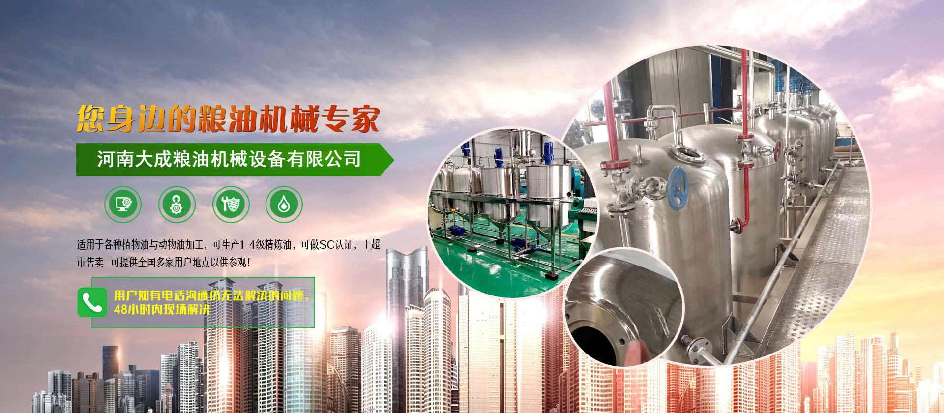 食用油精煉設(shè)備_油脂浸出設(shè)備_榨油機(jī)全套設(shè)備--河南大成機(jī)械設(shè)備有限公司是專業(yè)從事油脂精煉設(shè)備、油脂浸出設(shè)備、榨油設(shè)備等各類型油脂加工設(shè)備研制與生產(chǎn)的高新技術(shù)企業(yè)。